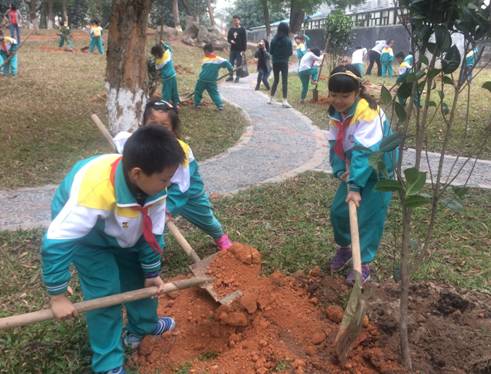 低年级的小同学虽然是首次参加这样的集体活动,但每个人都表现出了不怕脏,不怕累的精神面貌。他们在班主任的带领下团结协作,顺利种下了伴随自己一起成长的树苗,也在心中种下了环境保护的种子。