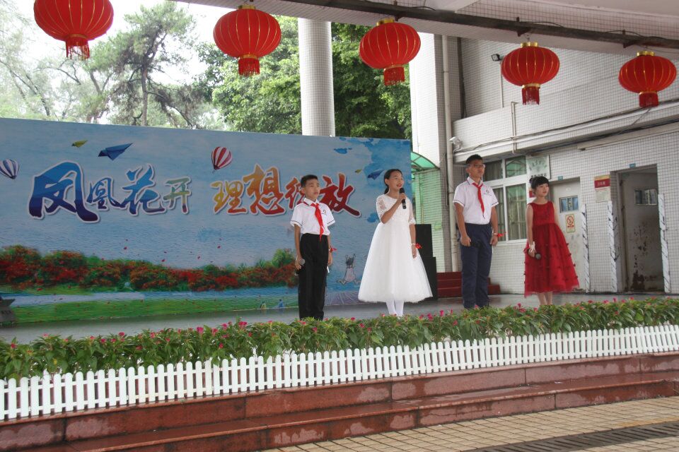 夏季是凤凰花开的季节,也是六年级学生的毕业季。附小的门前有一颗高大的凤凰木,每年夏季,六年级毕业生都是迎着凤凰花雨离开母校的。凤凰花语是“思念”、“离别”,门前的凤凰花寄托着附小毕业生的离别之情。