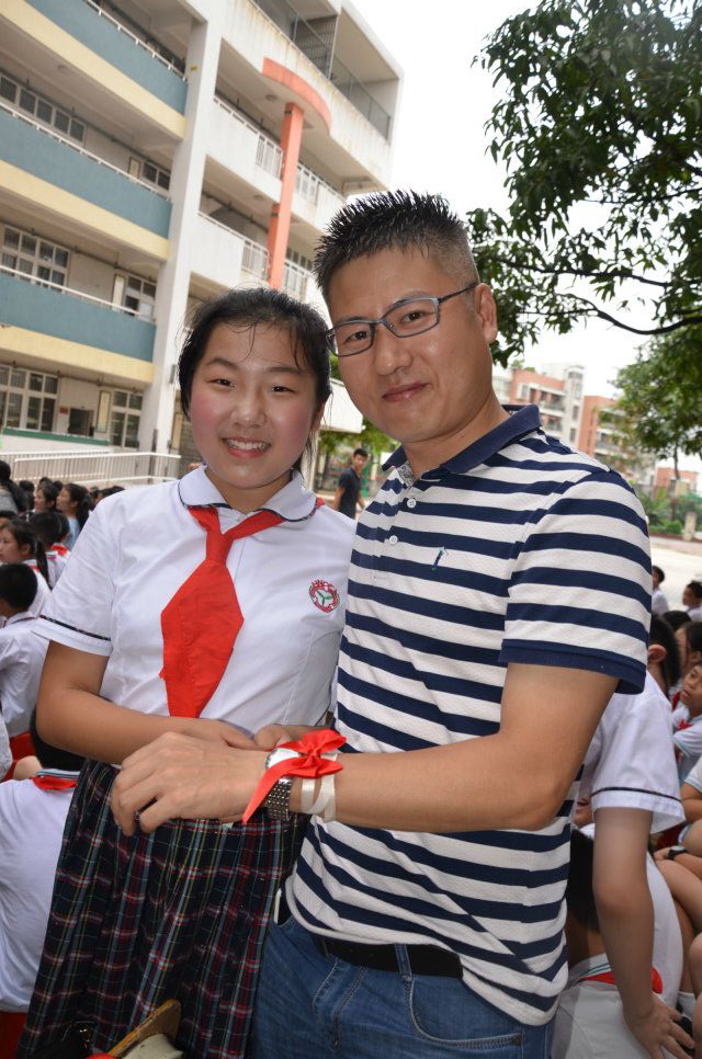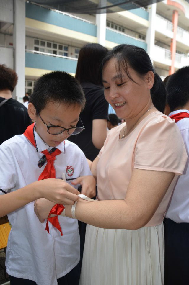 活动的高潮是六年级全体学生合唱《天之大》,并给家长系上缎带,感谢家长养育之恩。情之所至,在场的老师、家长、学生都不禁流下泪水。这泪水包含着对附小的依恋,包含着对老师、家长的感谢,包含着对同学的不舍,更包含着对毕业生未来的美好希望。