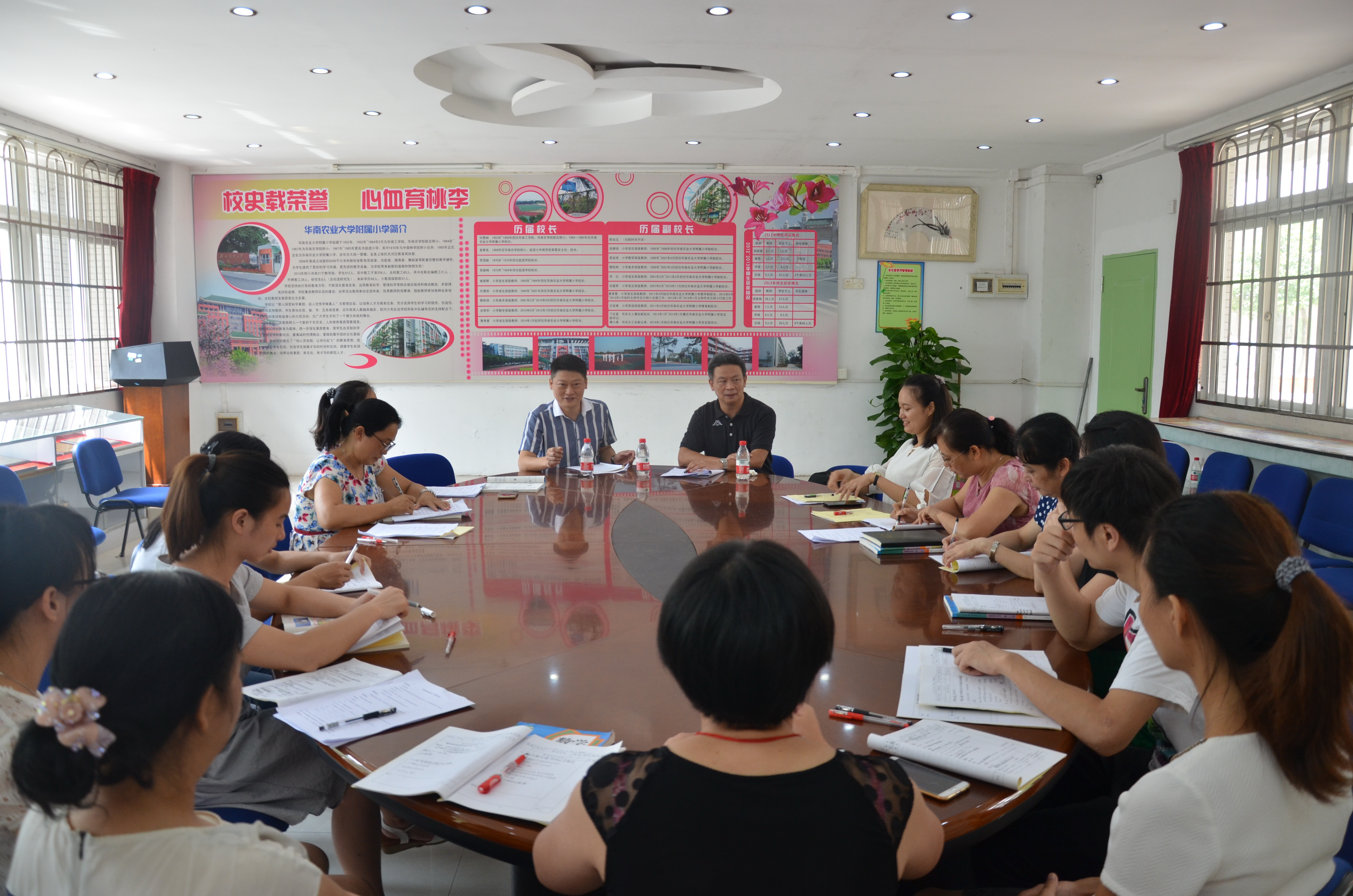 2017年9月14日上午,天河区小学数学教研员周峰老师到华农附小指导工作。他听了张薇、赵素萍两位老师的公开课,并和附小刘安明校长及全体数学教师开展了研讨活动。