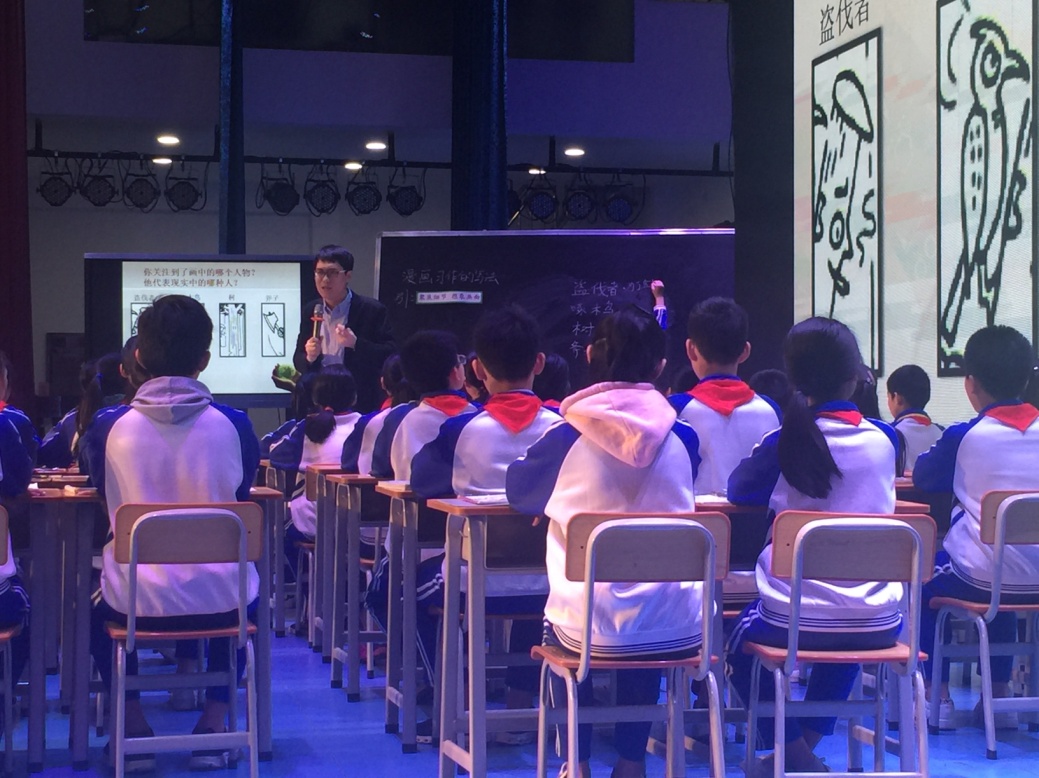 在课例研讨环节,全省共有3名教师代表上示范课,我校的杨瀚涛老师便是其中一位。12月7日下午,杨老师作为附小新生代骨干教师代表以及名教师培养对象,与普宁红领巾实验学校六年(4)班的学生共同展示了一堂题为“脑袋有虫”的漫画习作课。杨老师虽然教龄不长,但初生牛犊不怕虎,他的课一改传统漫画习作的指导方式,另辟蹊径地鼓励学生从多个角度解构漫画,锻炼发散思维,尊重个性表达,精彩纷呈,大获好评。这一堂课在刘校长的直接指导下,历经半年的准备,十多场次的磨课、评改,凝聚了附小语文科组的集体智慧,向外展现了附小教师先进的教学理念、扎实的教学基本功。