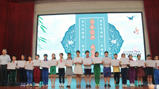 6月6日上午,2018学年广州市“传承经典 我爱诗词”现场展示活动于我校举行。本次活动分为户外展示和现场展示两大部分,分别在竹铭草海和团委学生活动中心进行。全市各区共9所小学的表演队伍、12所小学的比赛代表队参加了本次活动,此外,还有30名“诗配画”获奖选手参与颁奖仪式。