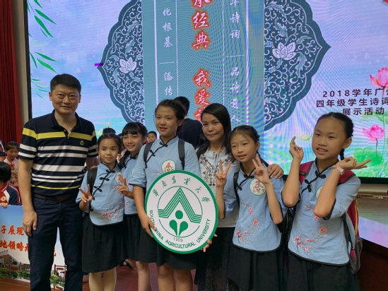 华农附小校长刘安明表示:“在这个经济高速发展的年代,我们更要不忘初心,传承中国优秀文化。我们应该在日常的中华经典诵读等活动中,激发孩子们对古诗词的热爱,将中华传统文化渗进他们的骨髓里,让他们成为真正的、有根有灵魂的中国人。”