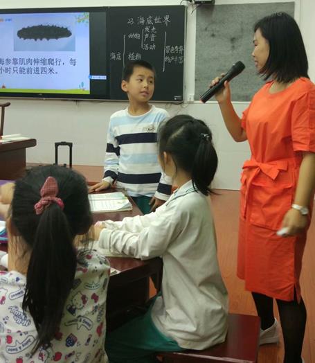 三年(3)班杨芳老师给我们展示一节内容丰富,教学形式多样的《海底世界》阅读课。在课堂中,杨老师抓住关键句、关键词引导学生理解文本,理解作者的写作模式。
