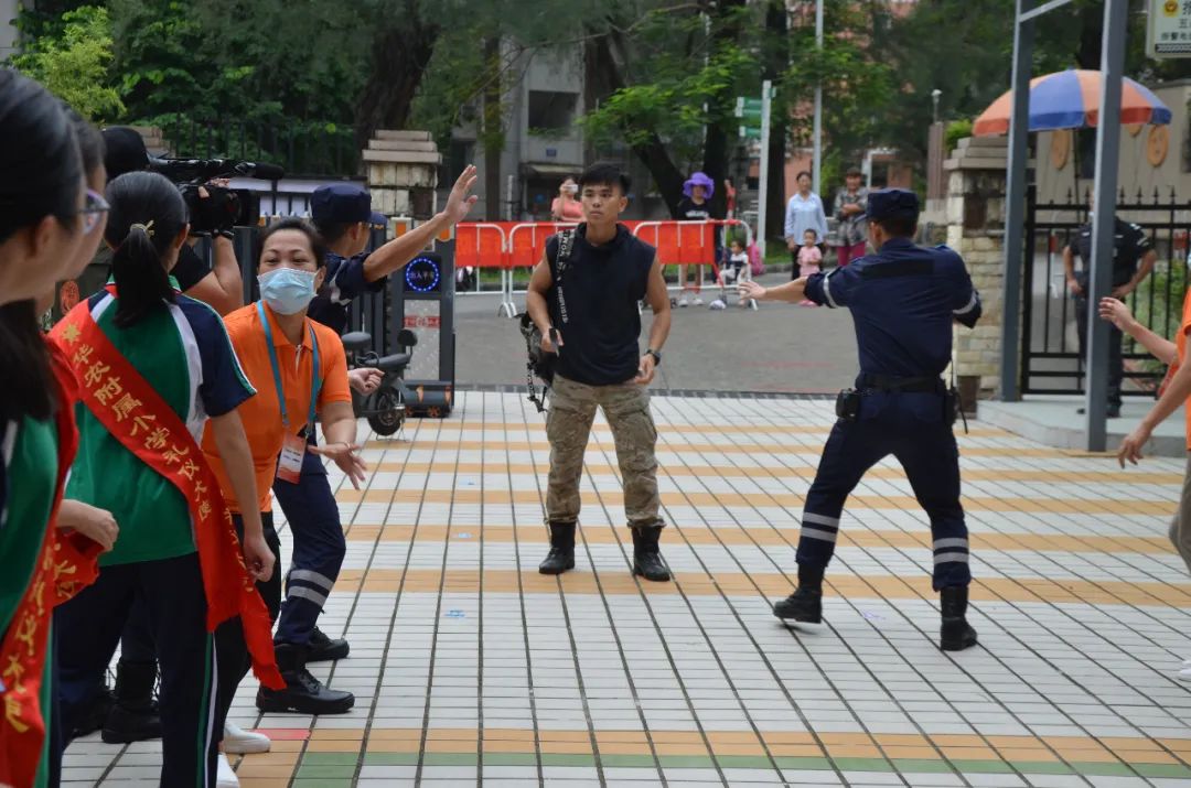 警报解除,全校师生在校门广场集中,黄磊教练的团队给大家重演了上学预袭的场景,讲解了师生自救的方法。大家在逼真的情境中提高了应变能力和避险自救能力。