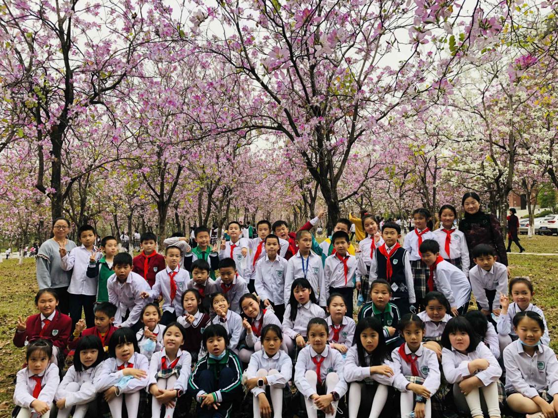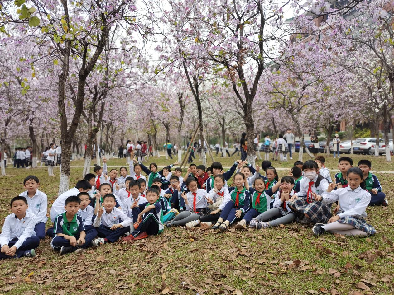 在广州,素有“北有武大樱花,南有华农紫荆”的说法。三月的羊城春意正浓,正值洋紫荆花观赏全盛期。为了让学生亲近大自然,感受春天的美景,进一步引导小学生的文明素养,强化文明行为教育和习惯养成。近日,华农附小组织学生开展“一元复始,万象更新,我们一起去踏青”活动。