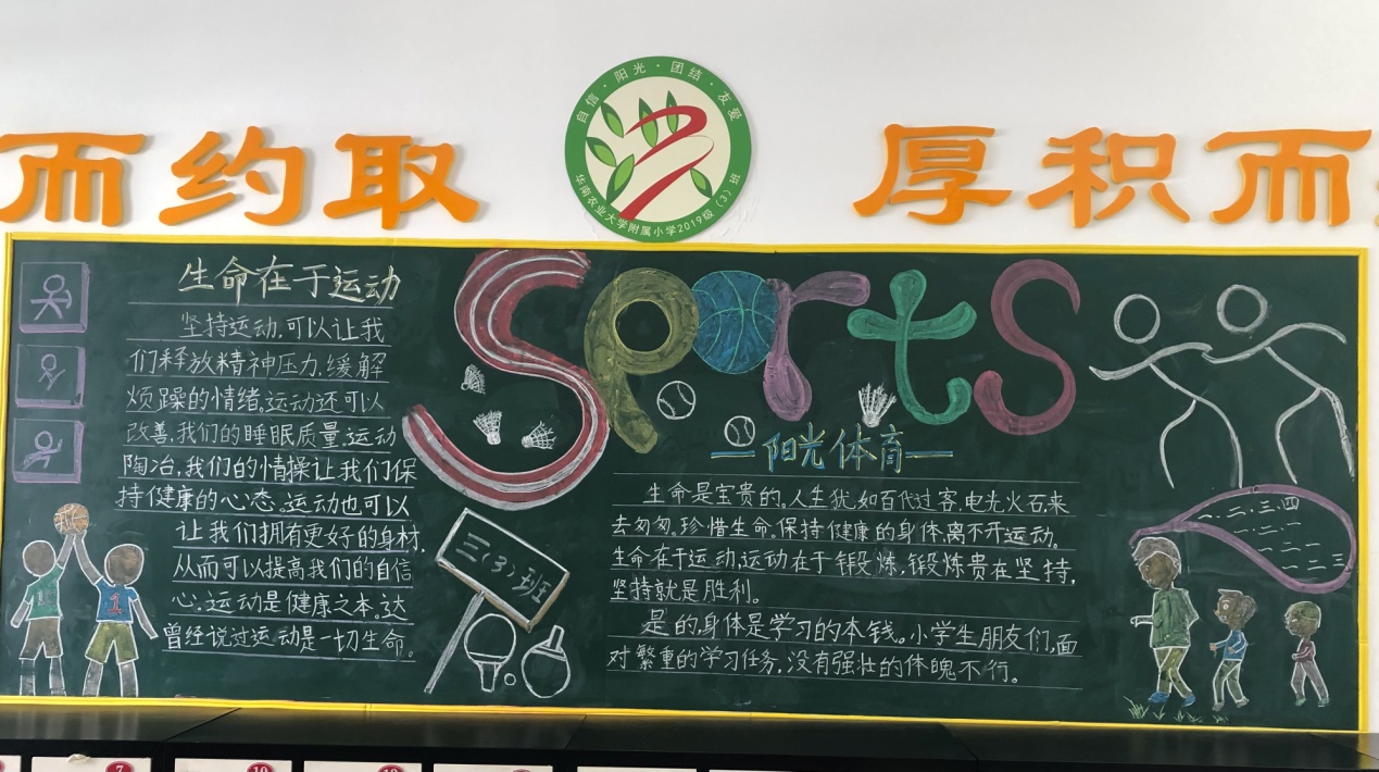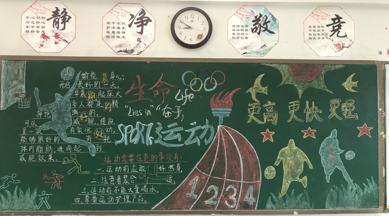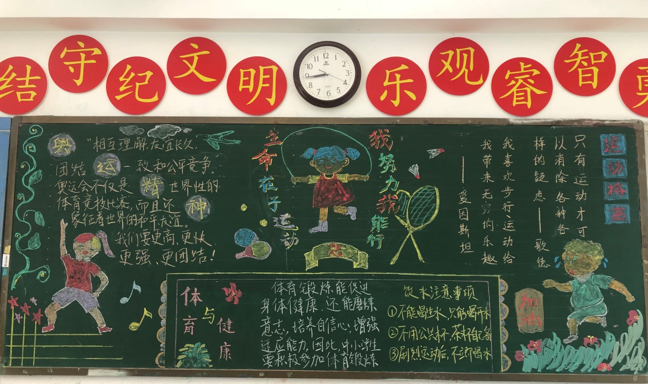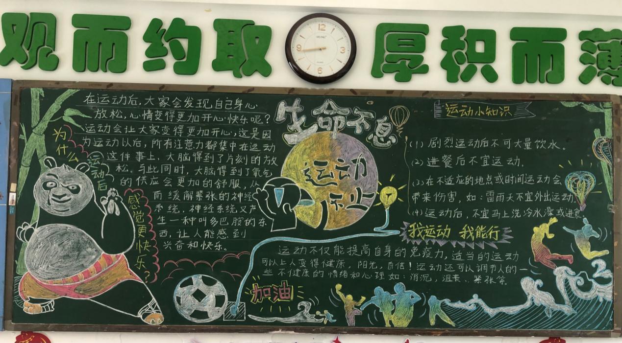 体育承载着国家强盛、民族振兴的梦想。为响应本月即将举行的校运会,进一步营造“全校运动”的氛围,我校开展了“生命在于运动,我努力我能行”主题板报评比活动。在班主任的精心组织下,各班学生积极搜集素材,认真构思版面,创作出一幅幅内容丰富、排版美观、主题鲜明的板报。