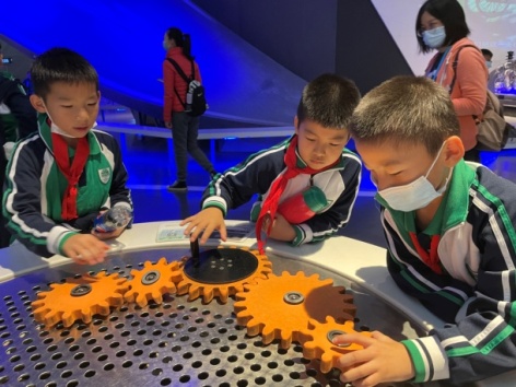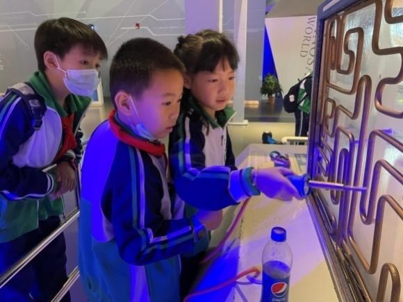 一下车,同学们个个都迫不及待地想进入这个科学世界,去体验科学的奥妙。科学中心有"绿色家园”、“飞天之梦”、“人与健康"、"感知与思维”、“实验与发现”、“科技影院”、“交通世界”、"儿童天地”等多个展馆。每个展馆都各有特色,同学们在其中玩实验小游戏,感受科学的魅力。一位四年级的学生兴奋地说:“每个场馆都有自己体验的项目,让我觉得科技很有意思,不像课本那样枯燥乏味,抽象难懂”。
