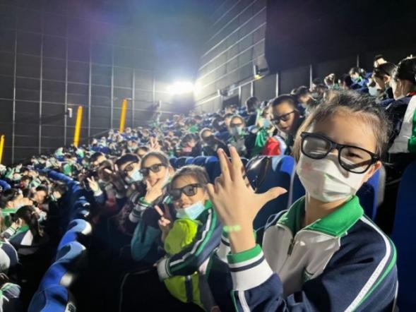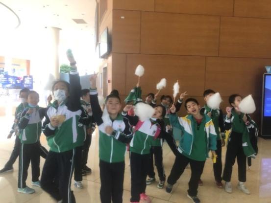在科技中心,同学们还看了一场科技电影。科技影院引进了3D巨幕影片《海狮》、《地球的故事》、《南极恐龙》等十多部科普影片。影院屏幕宽29米、高22米,是目前亚洲地区最大的巨幕影院,可容纳610名观众同时体验。同学们看得津津有味,看完电影还愉快地吃起了棉花糖。