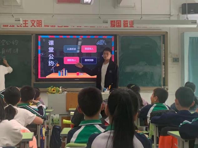 2019届华农社工系六名实习生自2021年11月入附小实习以来,为促进学生身心健康发展,积极投身于助班班主任工作中,实习生们主动与班主任了解班级情况,观察班级学生的生活作息习惯,协助班主任工作。