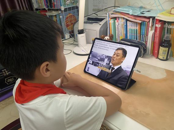 三四年级的学生通过网络了解几位全国劳模的事迹,还和爸爸妈妈一起进行了一次大扫除。