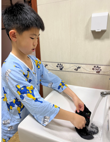 在这个特别的五一劳动节假期里,同学们学会了很多生活技能,和家人的关系也更加融洽了。蔡乐轩同学非常有感触地说:“这次五一让我对劳动有了更多的体会。劳动要靠技巧,不能全靠蛮力,而且要用心去做,才能做好这件事。爸爸、妈妈和奶奶为我们家付出了那么多,我不能老是坐享其成。我要行动起来,为我们家出一份力,让我门的家更加整洁、漂亮。”