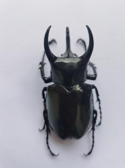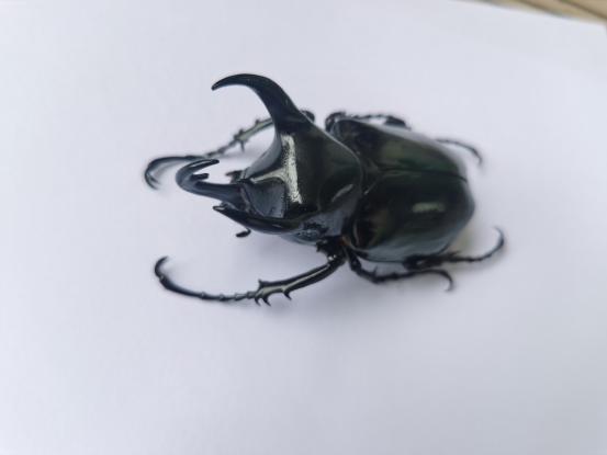 南洋大兜虫是国内外昆虫爱好者很喜欢养殖的一种甲虫,体型硕大,胸部有三只“角”伸向前方,威武霸气。
