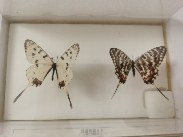 包括柑橘凤蝶、香蕉弄蝶、灯蛾等,很多蝴蝶雌雄成虫形态不同,选取了玉带凤蝶的雌雄成虫一起摆放,让小朋友们了解雌雄二型的有趣现象。