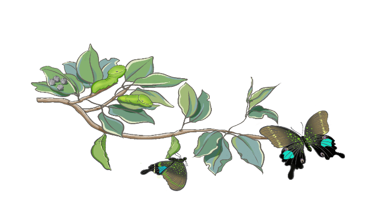 巴黎翠凤蝶生活史及其寄主植物三桠苦(赖慧莹手绘)