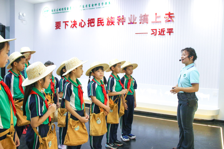活动中,由60名华农附小学生组成的“小农宝”体验团,分成“水稻组”“荔枝组”“番茄组”三组,参观了学校水稻机械化博物馆、国家区域性畜禽基因库暨广东省畜禽种质资源库,进行趣味农耕运动会,并在华南农业博物馆了解农耕文明和农业科技发展,沉浸式学习农业知识、体验农事乐趣。